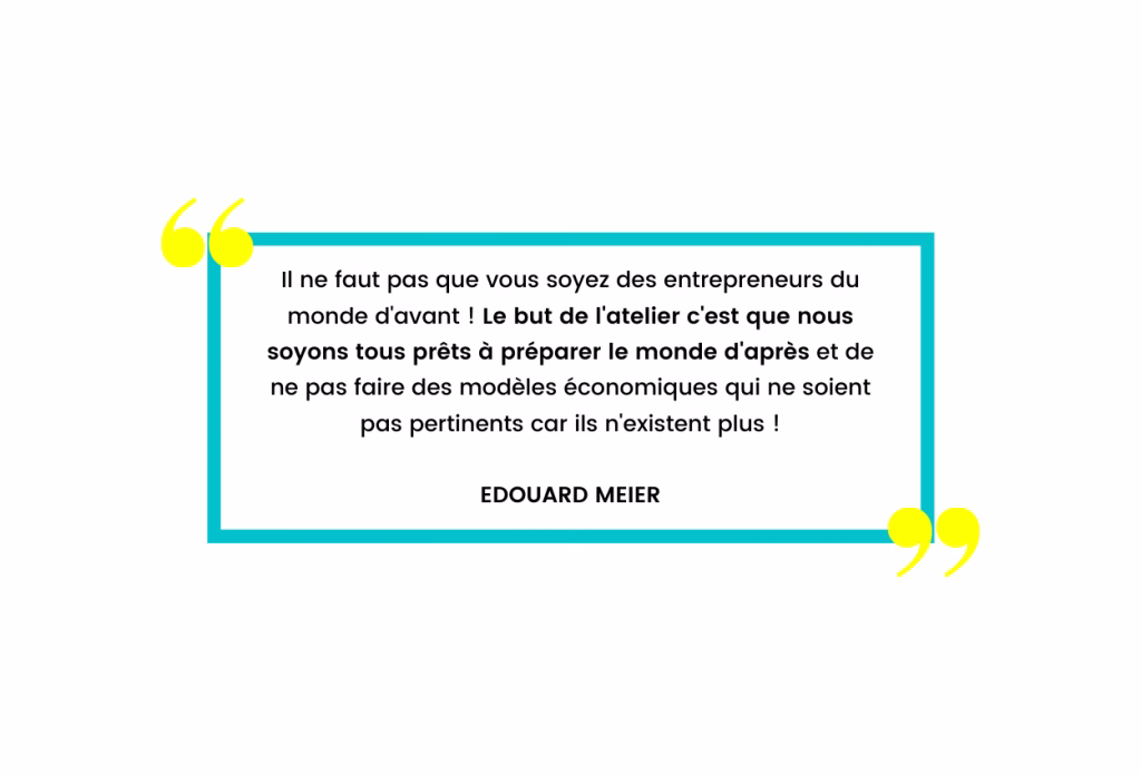 "J'ai trouvé cela intéressant de situer son projet dans un contexte général post-covid. Cela me fait progresser dans ma réflexion. J'ai les idées qui bouillonnent 💡 et je vais aller tout de suite continuer à travailler pour ne pas perdre tout ça."