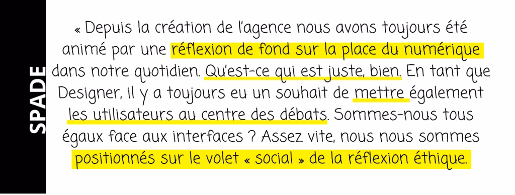 Nous avons ainsi été la première agence francophone en Belgique à obtenir le label AnySurfer qui prouve notre capacité à produire des sites web accessibles. Nous avons par la suite étendu le spectre de notre réflexion éthique aux enjeux environnementaux et de responsabilité. » Benoit, Co-fondateur de Spade