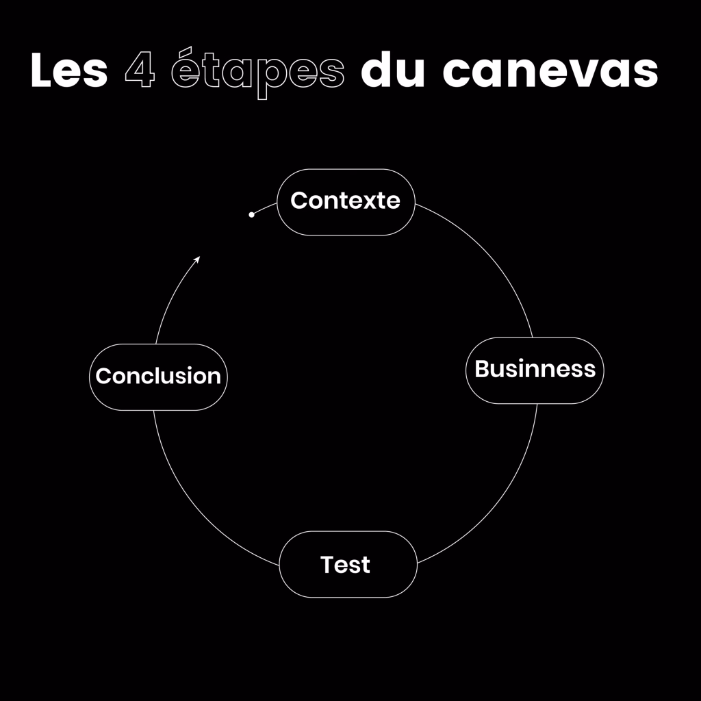 Le canevas est découpé en 4 grandes parties pour te permettre de voir les étapes principales en un coup d'oeil.