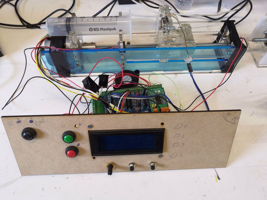 À la demande du corps médical qui craignait une pénurie (qui n’a heureusement pas eu lieu), nous avons fédéré notre communauté (ATLR engineering, AGC, Handzone.io, SONACA, ENGIE, Manetco, Labo21, IBA… du côté des entreprises et de nombreux makers) et travaillé à la création d’un prototype de pousse seringues développé dans la logique de l’open source. Pour information, un pousse seringue est un dispositif électro-mécanique qui presse une seringue classique à une vitesse très précise (typiquement, un stepper sur une vis trapézoïdale).