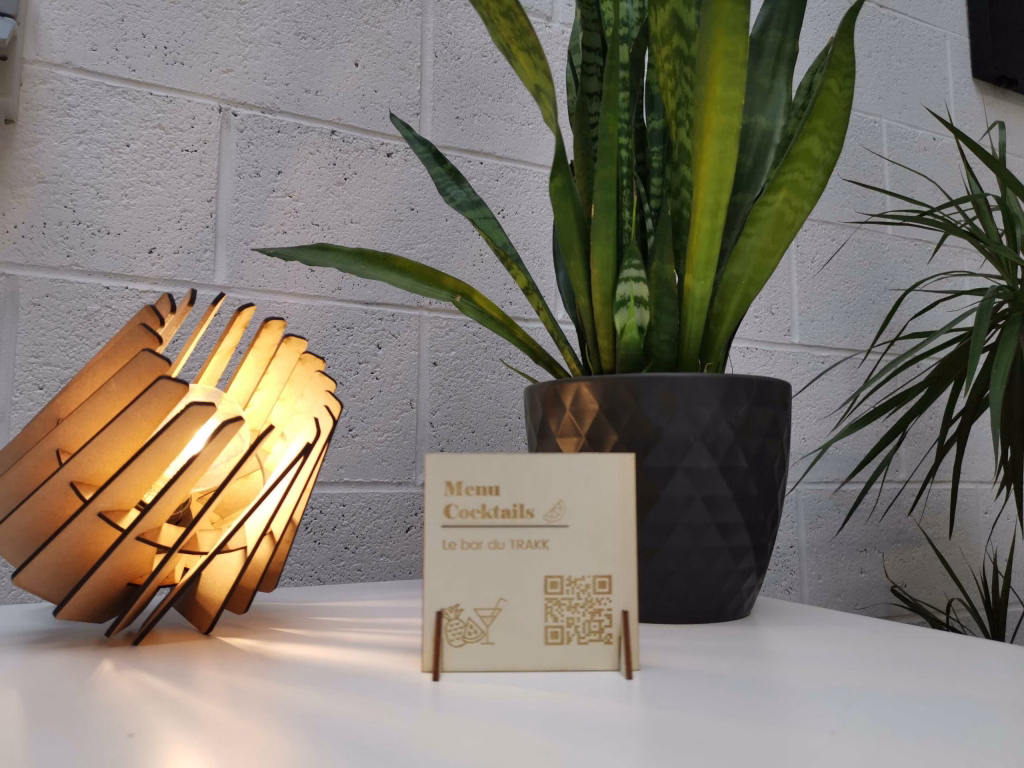 Nous avons réalisé et mis en ligne un tutoriel pour apprendre aux restaurateurs à créer eux-même leur QR code et à personnaliser un fichier sur base de gabarit fait via Inskape (logiciel libre de droit et gratuit). Une fois fait, ils n’ont plus qu’à nous envoyer le fichier final et nous nous chargeons de graver et découper les visuels fournis dans des plaquettes en bois facilement disposables sur les tables des restaurants.